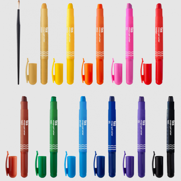 Giz Cera Gel Retrátil C/Pincel Aquarelável Mega Slim Tris