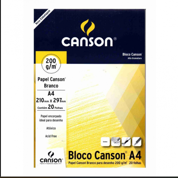 Bloco Desenho A4 200g 20Fls Branco Canson R$28,40