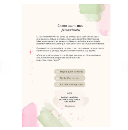 - Conteúdo especial: Definição de regras, criação de Haikais, planejamento literário