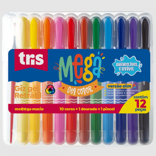 Giz Cera Gel Retrátil C/Pincel Aquarelável Mega Slim Tris R$40,90