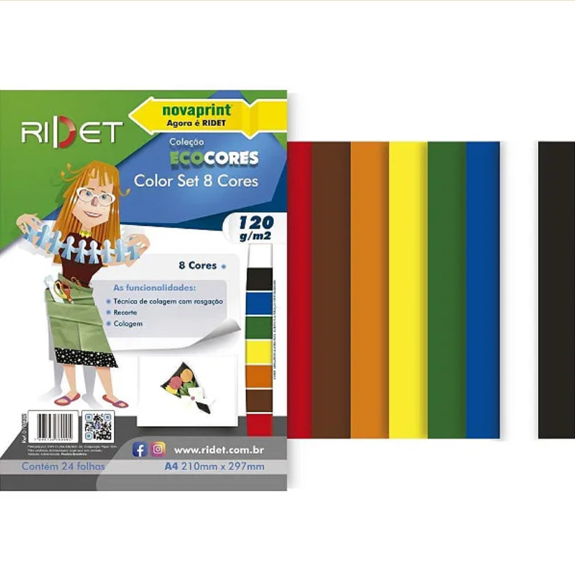 Amplie suas habilidades e criatividade com o Papel EcoCores Color Set Ridet. Desenvolva trabalhos manuais com 8 cores marcantes e se surpreenda com o resultado das suas criações!
