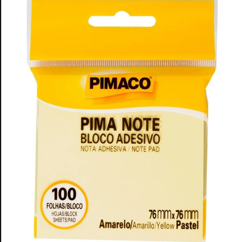 Bloco Adesivo Amarelo Pastel 76mm X 76mm C/100 Folhas Pimaco