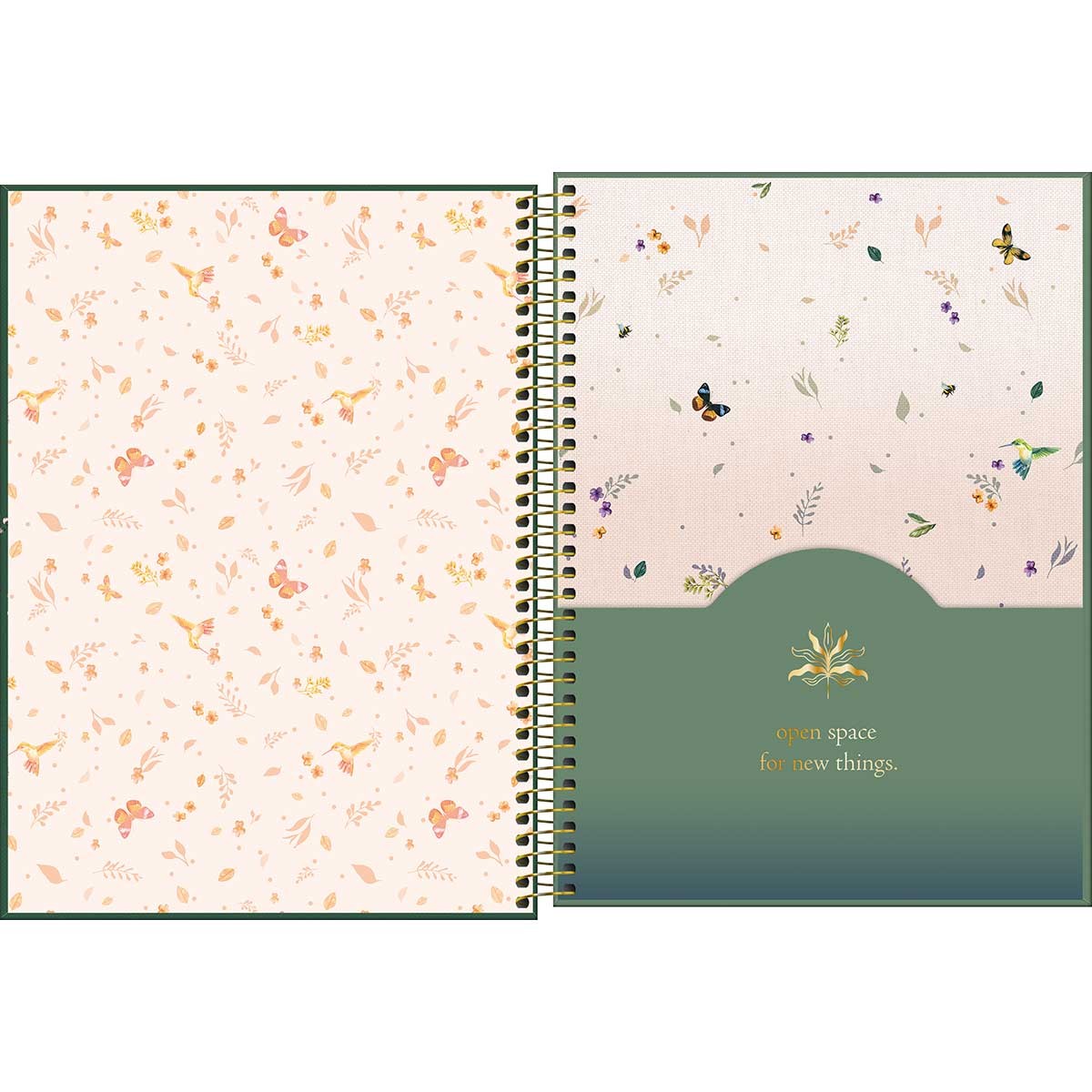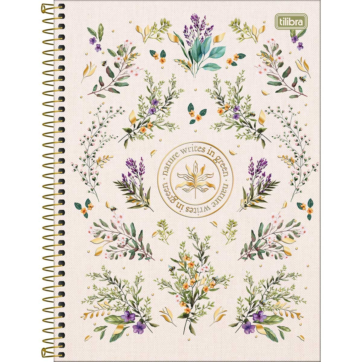 Use este modelo, com capa dura com detalhes metalizados e a parte interna decorada, bolsa de papel para guardar trabalhos, adesivos funcionais, folhas pautadas e espiral colorido, para anotar as aulas, fazer resumos, listar tarefas e organizar as ideias de forma prática e eficiente.