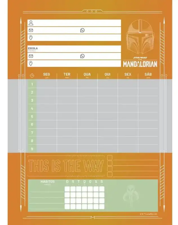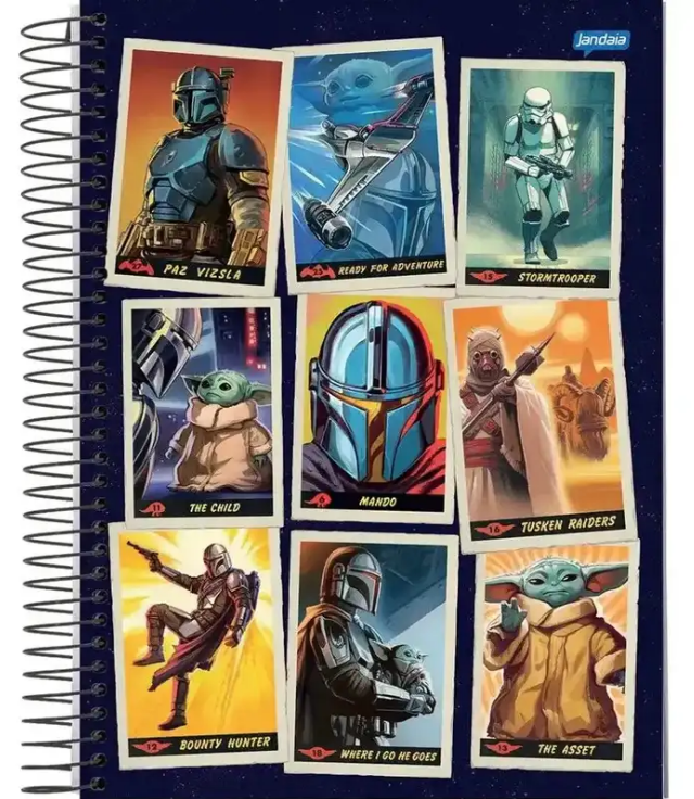 A linha de cadernos Jandaia Star Wars: The Mandalorian possui os personagens mais queridos da galáxia. Din Djarin, um caçador de recompensas muito qualificado, que se deparou com a missão de entregar um bebê da raça de Yoda para compradores desconhecidos. Porém ao perceber que o misterioso comprador não é alguém tão confiável, Din Djarin recupera a criança e decide fugir para encontrar um lugar seguro para ela.