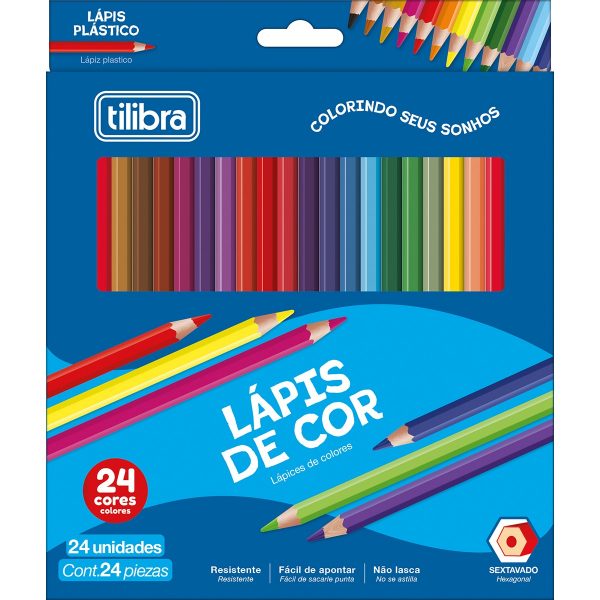 Lápis de Cor Resina Sextavado 24 Cores Resina Tilibra R$24,90