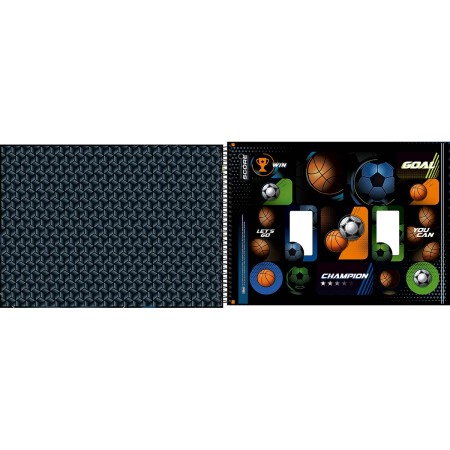 Este produto, com capa dura com estampa que destaca a força do esporte no universo jovem, tem adesivos relacionados à marca Score e possui pautas ampliadas, bem delimitadas, com espaçamento maior que as linhas convencionais.