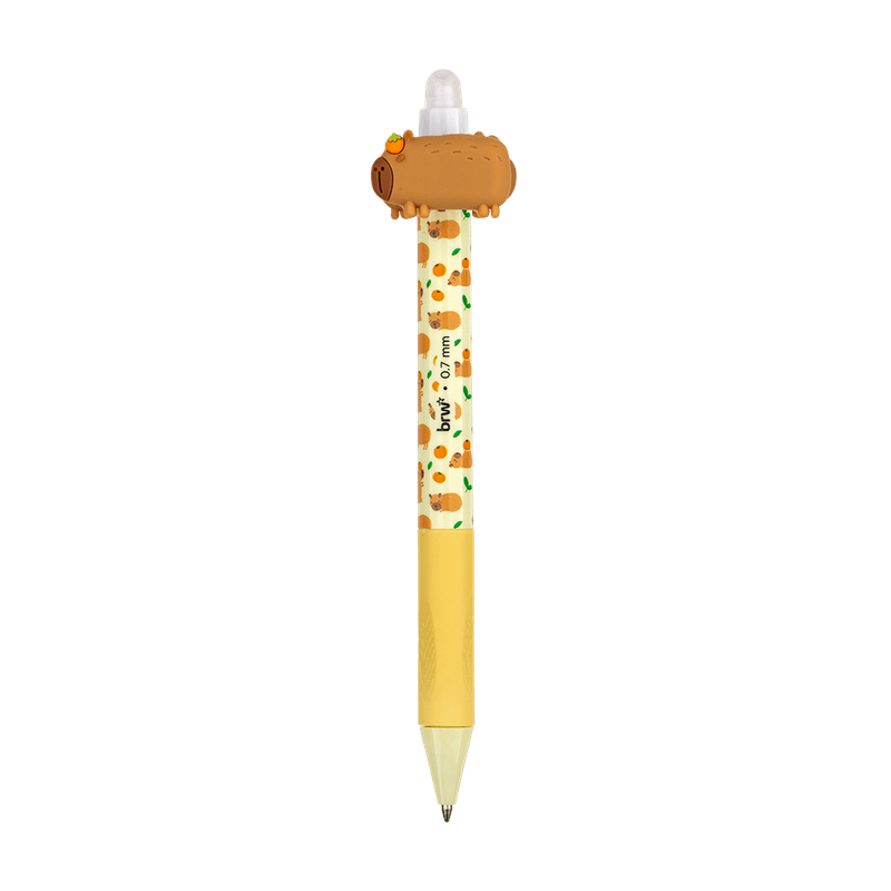 A Caneta Gel Apagável Capivara BRW une praticidade, estilo e muita fofura em um só produto! Com ponta média de 0.7mm e tinta em gel de alta qualidade, ela garante uma escrita suave e precisa. O grande diferencial? Você pode apagar o que escreveu com a borracha embutida na tampa, sem deixar resíduos ou danificar o papel.