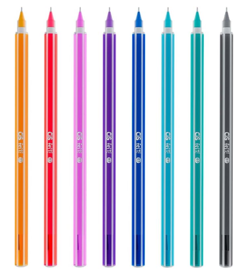 Estojo com 8 canetas CIS Fest em cores tradicionais, com o corpo longo proporcionando uma melhor escrita.