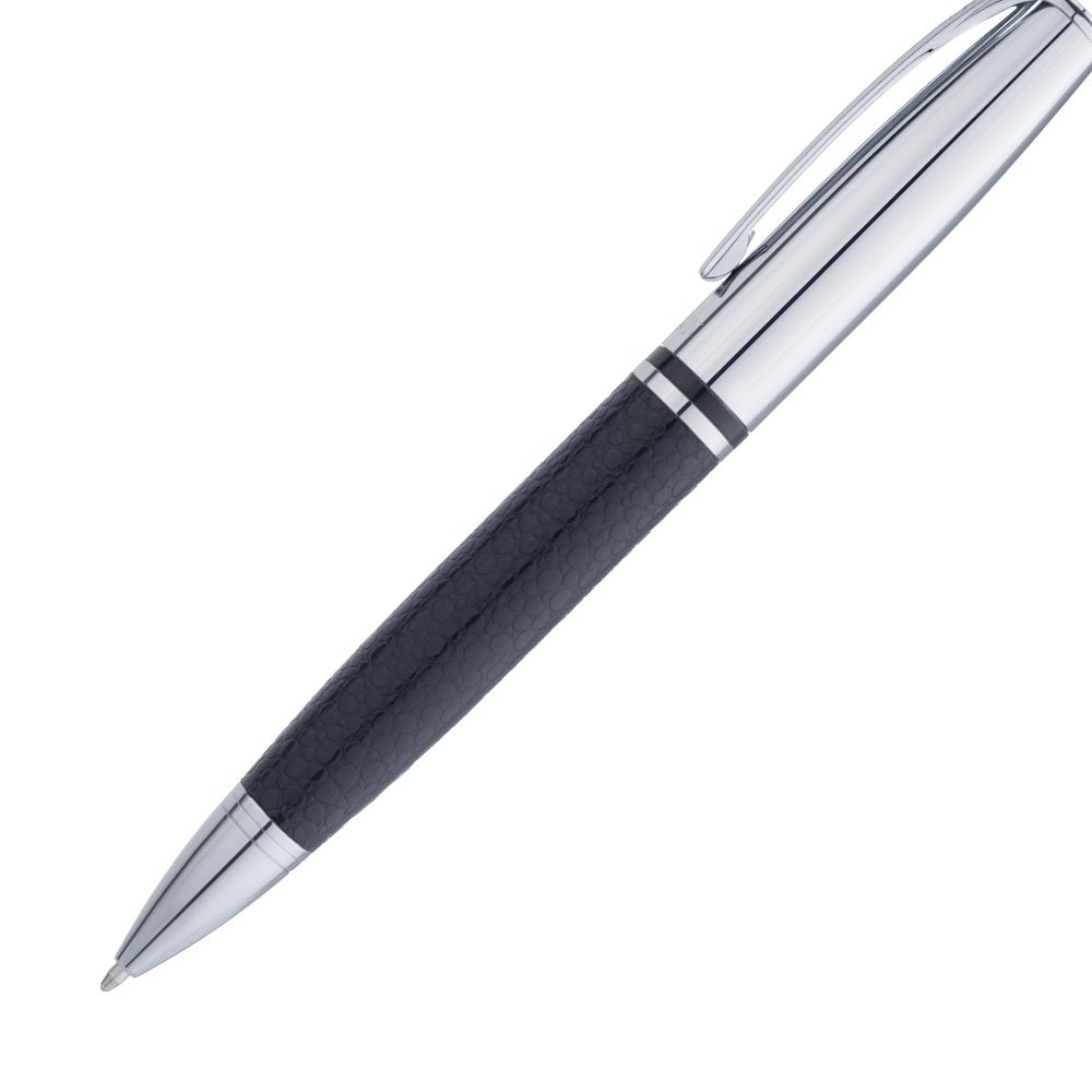 Sinta o equilíbrio perfeito entre desempenho e estilo. A textura macia do couro sintético proporciona firmeza e conforto a cada traço. O mecanismo de torção garante praticidade, enquanto a ponta de aço entrega linhas suaves e consistentes, com tinta azul de secagem rápida e fluxo constante.