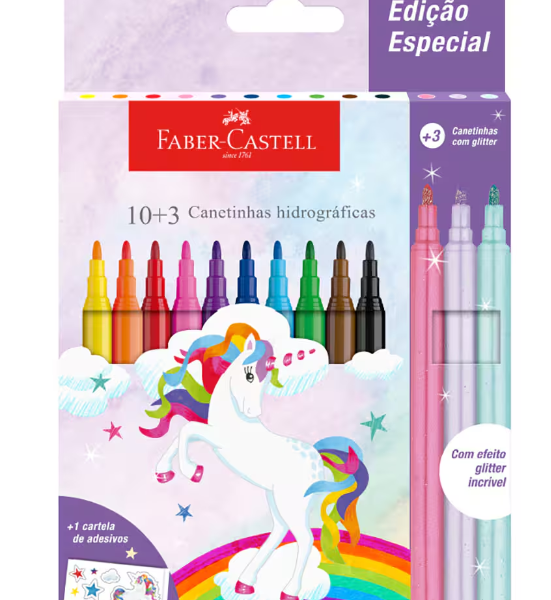 Caneta Hidrográfica 10+3 Cores Unicórnio Faber Castell