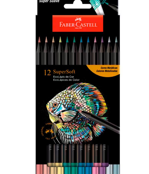 Lápis de Cor 12 Cores Supersoft Metálicas Faber-Castell R$45,15