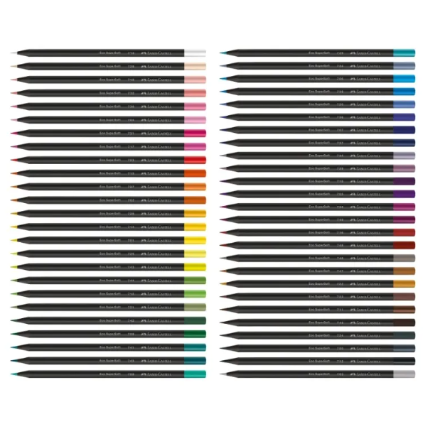 Compromisso com a sustentabilidade: retirada de embalagens plásticas. Com mina super macia, cores mais vivas e excelente cobertura, pinta papéis claros e escuros. Selo de originalidade mostrando o pioneirismo e design exclusivo Faber-Castell. Produzido com madeira 100% reflorestada, certificada FSC® – Forest Stewardship Council®.