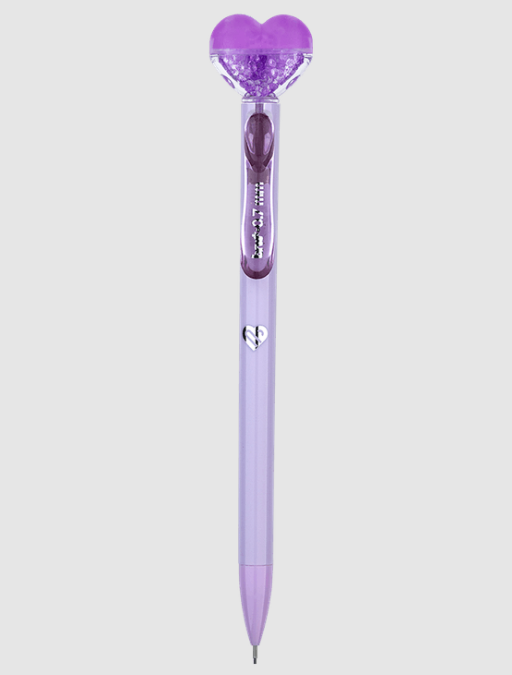 Com ponteira em formato de coração e com cristais na mesma cor da lapiseira. Conforto na escrita e traços finos e precisos.