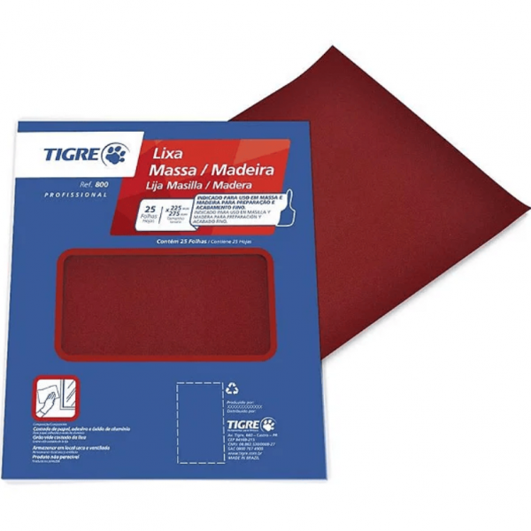 A Lixa Massa 22,5X27,5cm Nº 060 – Tigre:: Balaroti é incrível pois anula imperfeições e ajuda no preparo de paredes para o recebimento de tintas, oferecendo um acabamento perfeito. É muito usada para preparação de superfícies antes do lixamento de rebocos, argamassas, massa corrida, gesso, pinturas de parede e madeiras. O lixamento pode ser feito manualmente com bloco lixador ou com lixadeira portátil vibratória/oscilante, sempre a seco. A Tigre é sinônimo de pioneirismo e inovação. A marca oferece produtos que atendem os mercados predial, de infraestrutura, de irrigação e industrial. Além de tubos e conexões, também fazem parte do portfólio as marcas Claris Soluções em Esquadrias, Tigre Ferramentas para Pintura e Tigre-ADS, com tubulações de pead para saneamento e drenagem.